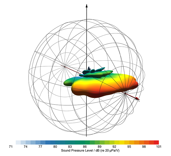 近场分析可提供扫描面之外任意点的声压,这对评估演播室监听音响、移动电话和平板电脑等个人音频设备的近场特性非常重要。在DUT周围的每个位置,都可以可视化复传递函数、空间声压分布(幅度和相位)等关键特征。