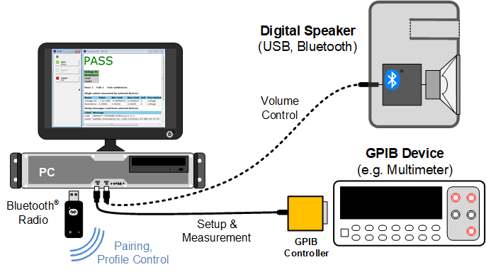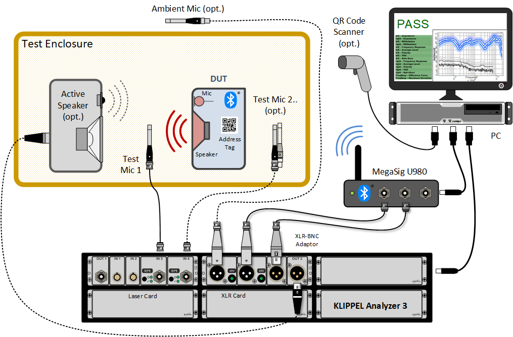 对于支持蓝牙的扬声器和耳机的测试自动化, EXD通过MegaSig U980的模拟蓝牙接口, 来强化任意QC测试序列中的蓝牙配对和音频控制。