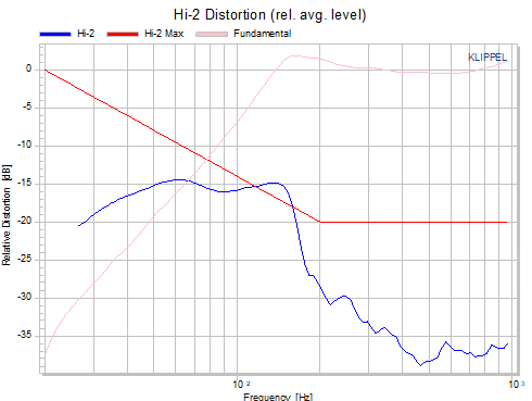 Hi-2失真(也称为“Blat”失真, 因为在低音信号上检测到的缺陷听起来像是“blat”声)是根据高次谐波失真计算出来的。此类谐波以特殊方式加权, 来强调扬声器行为无法接受的缺陷症状。此类失真的原因是音盆高位移时悬挂刚性的迅速增加。