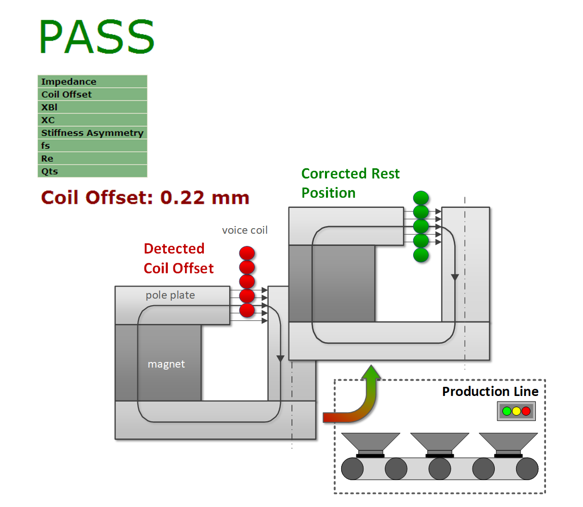 QC电机+悬架系统检查是生产线上快速识别非线性驱动参数的独特工具。基于获得专利的KLIPPEL技术, 识别出有效的线性和非线性参数(Bl(x)和Kms(x)), 并计算出有意义的如音圈偏移和悬挂不对称性的单值参数。这些参数提供了宝贵的信息, 可立即采取措施修复扬声器失真、最大输出限制或稳定性问题的原因。被测驱动单元可以在自由空气中以及密封或开口箱中运行, 并可提供其他箱体参数(fb、Qb)。不需要麦克风或机械传感器(激光), 因为所有信息均由输入电流提供, 因此测量不受环境噪声的影响。