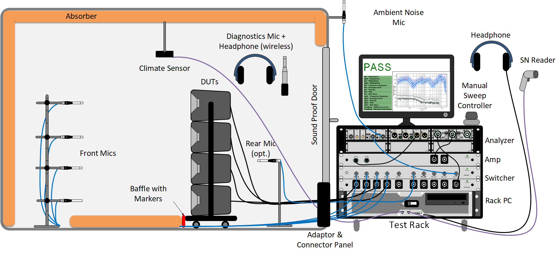 The scenario introduced in application Quality Control of Sound Reinforcement Equipment refers to a full-featured QC testing approach that provides optimum performance for manufacturers of PA speaker or big rental houses.