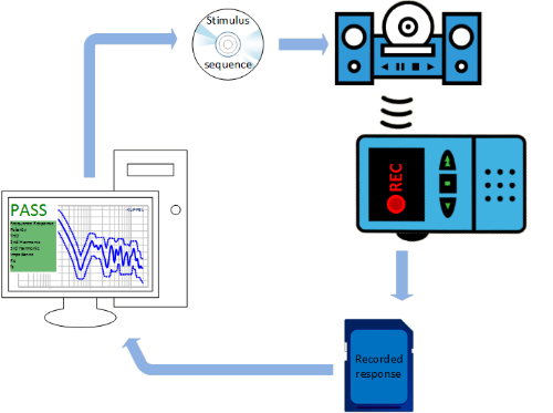 测量的响应需要离线分析。录制时, 麦克风信号存储在存储设备中,最终的音频文件由QC软件导入以进行分析。